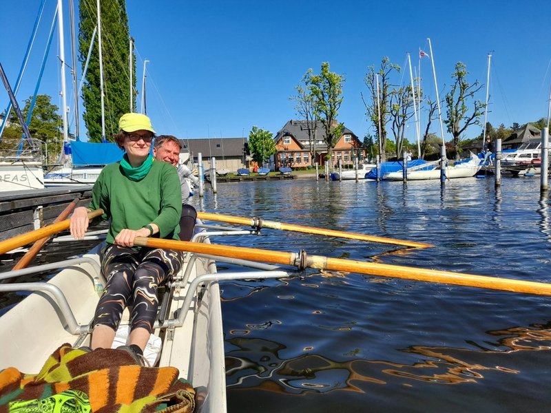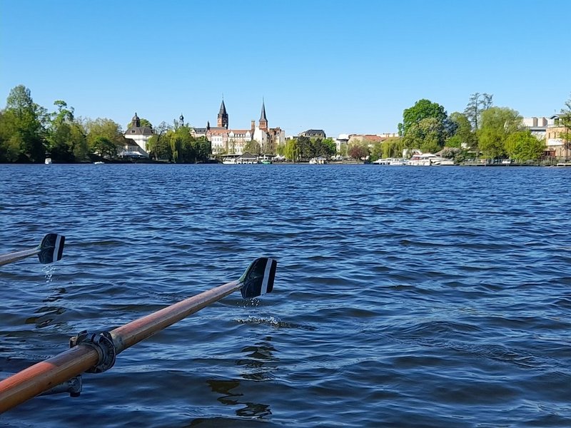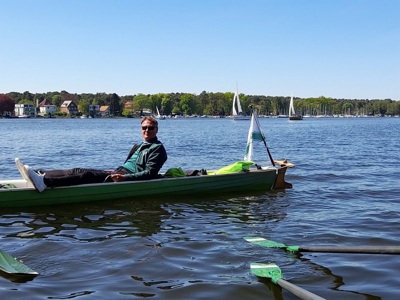 Sonntagvormittag konnten wir an der Regattastrecke Grünau einige Rennen der Berliner Früh-Regatta verfolgen und legten einen Zwischenstopp beim Schmetterlingshorst ein. Am Seddinsee wählten wir dann eine andere Route als auf dem Hinweg. Beim Anglerheim Wernsdorf war ein Tisch für uns reserviert und so konnten wir auf der Terrasse am Krossinsee das Mittagessen genießen.Am späten Nachmittag erreichten wir unser Bootshaus und hatten bei strahlend blauem Himmel und Sonnenschein insgesamt knapp 60 Kilometer zurückgelegt.