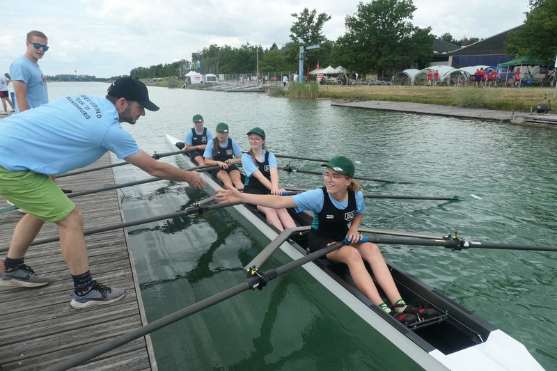 Für unsere beiden Mädchen-Vierer wurde es im Tagesverlauf sehr heiß. Nichtsdestotrotz waren wir unglaublich stolz, beide Vierer mit unseren 13-jährigen Mädchen im A-Finale zu sehen.